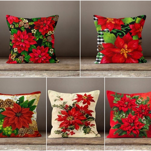 Christmas Flower Pillowxmas Red Poinsettia Cushion Etsy